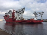 Vessel alongside AV Dawson Terminal, North Sea Supply Base No2 for discharge operations of Subsea ROV and Project Cargo.