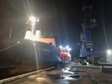 Vessel alongside at AV Dawson, North Sea Supply Base No1 for loading operations of 5000mt Ammonium Nitrate in bags.
