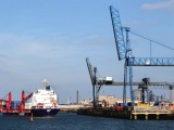Vessel alongside in the Port of Blyth, Wimbourne Quay for discharge operations of Project Cargo.