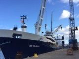 Connector arriving at AV Dawson - Berth No 2 for Mobilisation and Demobilisation operations.