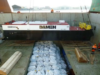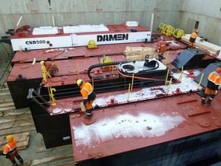 The dredger was purchased by them for use in Luanda by their sister company Draimar Projects and needed moving from Damens yard in Nijkerk, Holland.