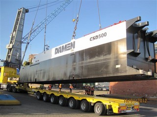 Thankfully the dredger is capable of being dismantled and shipped in seperate pieces, the heaviest of which being 63 tonnes. The total consignment consisted of 11 loose pieces and three 40' shipping containers.