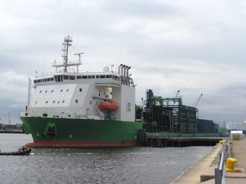 The rock was shipped from Norway using bulk carriers and transferred from these vessels, using their on-board conveying system, onto the DPFPV's "Tideway Rollingstone", "Seahorse" and "Flintstone" whilst they sat on dynamic positioning in the middle of the River Tyne.
